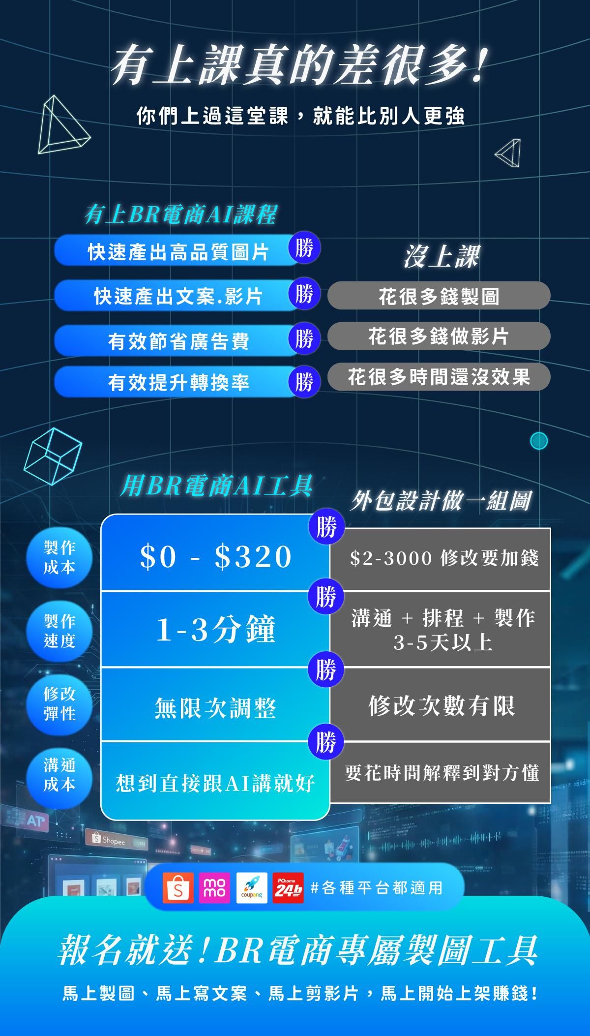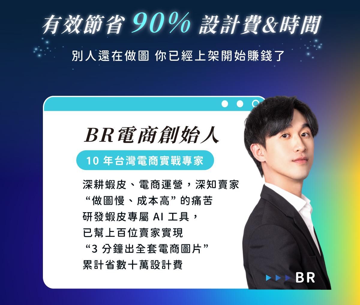 HI 我是BR , 電商創業實戰經營 10 年,電商公司人數 26 名 ,年營業額8200萬。 真實 4 年教學經驗,輔導學生人數超過 1000 人。 運用 PM、平台、廠商三方思維加上電商實戰經驗,深刻知道你在不同階段所遇到的問題,能立即幫你解決電商創業困擾。